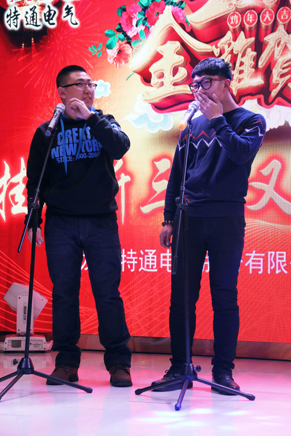 接下來,年會(huì)表演正式開始,特通員工載歌載舞、歡聲笑語(yǔ)中品嘗著2016一年來的用辛勤汗水澆灌出來的碩果,大家一起舉杯,共同祝賀特通電氣一年來取得的成績(jī),同時(shí)祝愿特通電氣2017年大展宏圖,創(chuàng)造出更美好的未來。